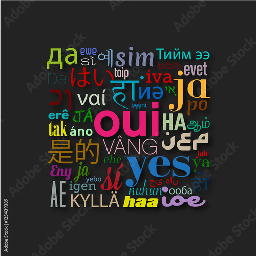 yes, card, poster, multilingual, tongue, language, colours, collection, english, french, letter, lettering, word, text, spanish, german, design, concept, abstract, affair, business, background, wallpaper, marketing, client