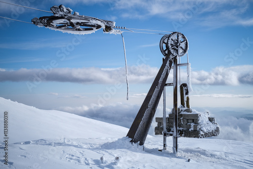 machine, ruin, top, mountain, snow, nature, sport, rust, industry, big, desolate, idled, europa, ski resort, detail, winter sports, blue, broken, chairlift, obsolete, outdoors, wheel, construction, alpine, transportation, transport, park, structure, machinery, ski, lift, iron, metal, cable, abandoned, winter, equipment, ski lift, old, rust-eaten