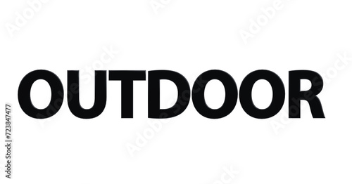 Outdoor - schwarze plakative 3D-Schrift, draußen, Natur, Sport, Erholung, Joggen, Wandern, Fahrradfahren, Aktivitäten, Freisteller, Rendering