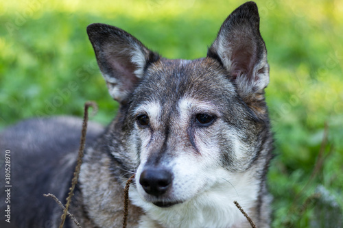 dog, park, happy, walk, outside, pet, animal, green, nature, doggy, funny, fun, adorable, cute, action, friends, canino, happiness, lovely, lucky, pretty, female, closeup, portrait, closeup, head, muzzle, cheerful, domestic, friendly, mongrel, mutt, aged, old, senior, walking, lie, rest, grass, grey, wolf, grey