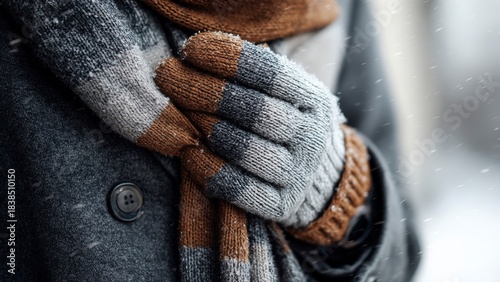 winter, glove, mitten, foulard, cosy, knitted, cold weather, warm clothes, winter fashion, frost, snow, outdoors, wool, texture, knitwear, snowflake