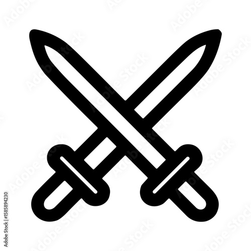 Outline Bold Crossed Sword Sharp Blade Duel Weapon Icon