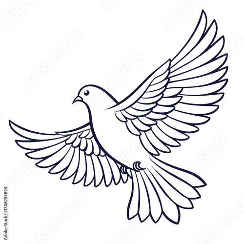 dove, bird, flight, flying, wing, widener, outline, drawing, vignetting, line art, simple, elegant, graceful, peace, hope, freedom, spirit, soul, religion, spirituality, symbol, message, communication, nature, wildlife, animal, avian, creature, white, black, isolated, white background, serene, calm, tranquil, gentle, divine, aethereal, delicate, artistic, graphic, design, vector, illustration