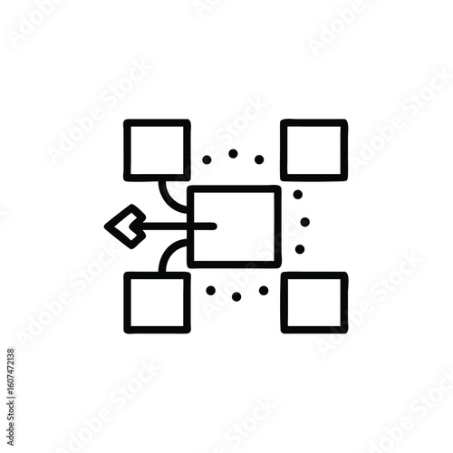 Outline icon interconnected squares with arrow business process