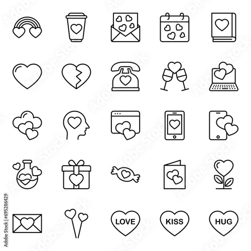 Outline icons set for Valentine's day.