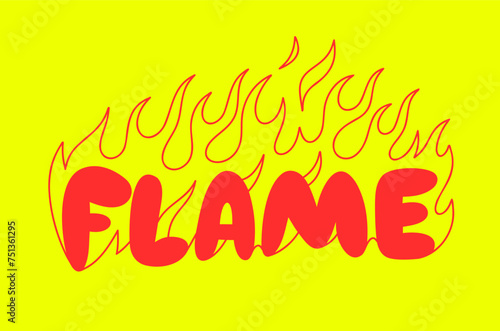 Outline image of the word “FLAME” stylized to look like it’s on fire. Neon sign. Vector image.
