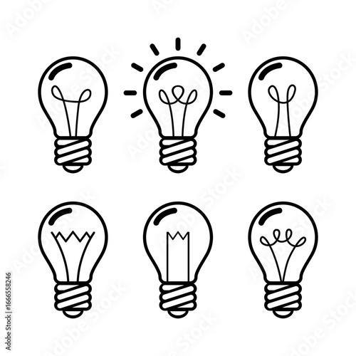 light, bulb, idea, collection, set, outline, line, drawing, vignetting, black, white, creative, innovation, invention, inspiration, bright, brilliant, genius, smart, thinking, solution, concept, electricity, energy, power, lamp, illumination, discovery, eureka, light bulb, moment, brainstorm, problem, solving, entrepreneur, startup, business, success, icon, symbol, vector, graphic, design, element, illustration, simple, minimal, clean, electric