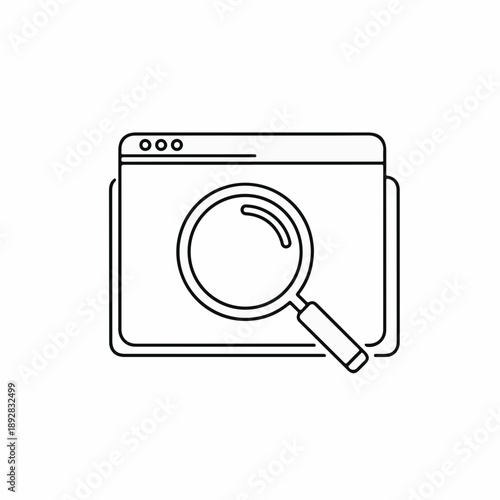 Outline of a computer browser window with a magnifying glass