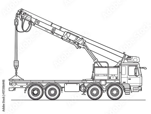 outline, white, background, silhouette, construction, profile, truck, vehicle, boom, lifting, construction equipment, heavy duty, mobile, machinery, industrial, site, operator, construction machinery, hydraulic