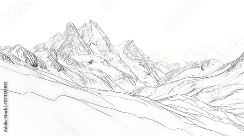 outline, mountain, range, white, background, landscape, nature, silhouette, peak, elevation, hiking, terrain, travel, adventure, view, exploration, highland, rocky, hill, wild, wilderness, eco, topography, geography, climb, slope, snow, summit, altitude, scenic