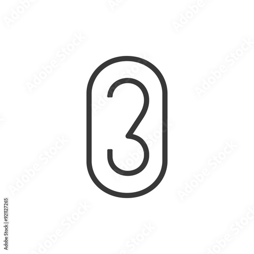 number, three, numeral, digit, outline, oval, shape, circle, rounded, black, white, symbol, graphic, icon, signs, design, font, typeface, line, simple, minimalist, geometric, abstract, illustration, isolated