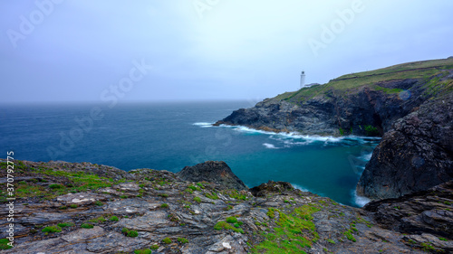 Overcast skies and drizzle at Trevose Head Light House, Cornwall, UK
