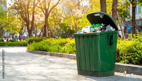 overflowing, park, garbage, waste, litter, recycling, environmental, pollution, public, city, green, plastic, container, full, rubbish, street, clean, hygiene