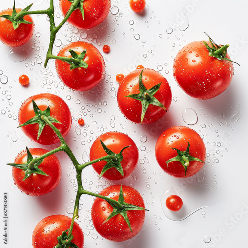 Overhead Shot with visible Water Drops. Close up of tomatoes.