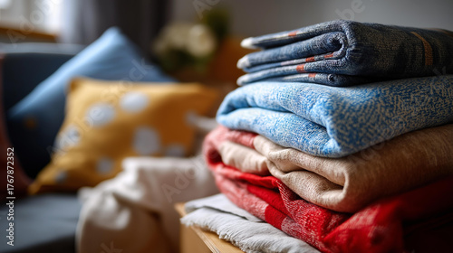 blanket, pillow, home interior, soft focus, copy space, warm tones