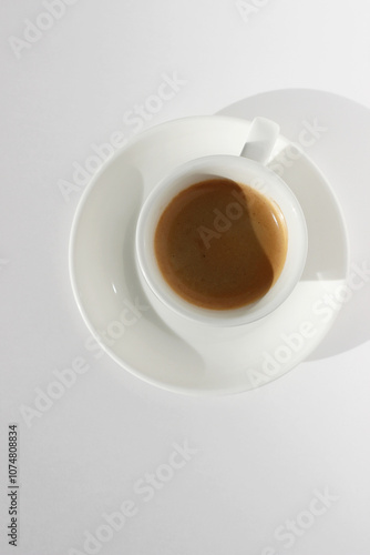 white background, coffee break, minimal, mug, ceramic, copy space, vertical, bar, cafes, crema, topview, kitchen, beverage, still life, caffeine, food, hot drink, espresso, table, overhead, from above, fragrant, closeup, favor, brown, aromatic, arabica, breakfast, closeup, brew, white, energy, hot, fresh, strong, drink, refreshment, isolated, saucer, cup, dark, black, aroma, morning, background, coffee cup