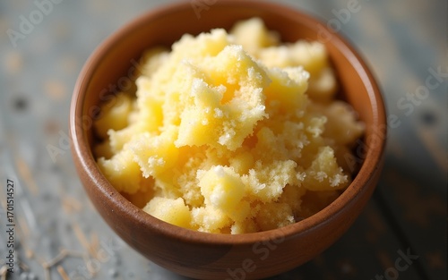 Overhead View of Natural Exfoliating Scrub in Wooden Bowl. High quality