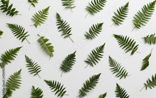 fern, leaf, green, white, background, pattern, nature, organic, plant, foliage, texture, design, overhead, botanical, arrangement, scattered, minimal, simple, clean, aesthetic, photo, image, visual, graphic, element, decor, wallpaper, template, summer, spring, fresh, bright, vibrant, colours, palette, still life, closeup, macro, detail, beauty, natural, artistic, creative, illustration, abstract, modern, trendy, style