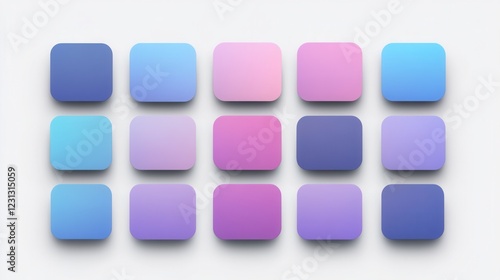 Overlapping Blue and Purple Gradient Squares, vibrant abstract design with a transparent background, ideal for digital projects and graphics