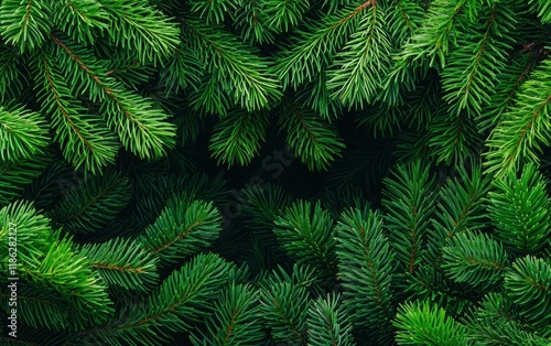 Overlapping fir tree branches vibrant green textures and intricate details creating a natural aesthetic ideal for seasonal or organic designs
