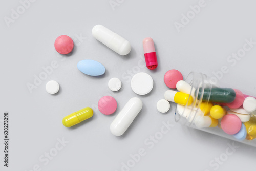 bottle, closeup, different, grey, pill, antibiotic, antidepressant, assortment, background, capsule, care, chemistry, colours, colourful, make well, diagnosis, disease, drugged, drug, flat, health, disease, lay, many, medicals, medication, medicine, nobody, object, pharmacy, prescription, problem, relief, remedy, sick, disease, spilled, supplement, symptom, tablet, take, taking, therapy, top, treatment, various, view, vitamin