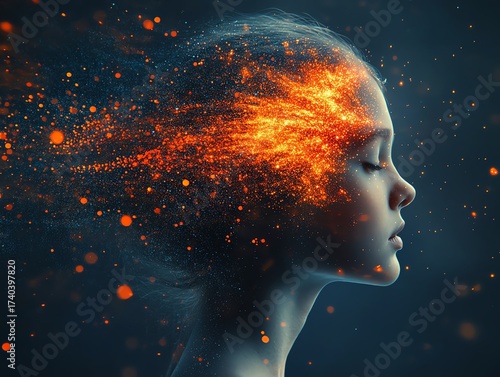 overwhelming, information, datum, explode, head, young, human, brain, much, influence, beauty, social, fantasy, glow, consciousness, design, expression, colours, depict, sculpture, concept, aethereal, connection, inner, abstract, universe, weber, surreal, sensation, essence, cosmic, woman, intuition, visual, symbolism, energy, mood, artistry, vision, radiance, transcendence, emotion, addiction, journey, portrait, aesthetic, harmony, aura
