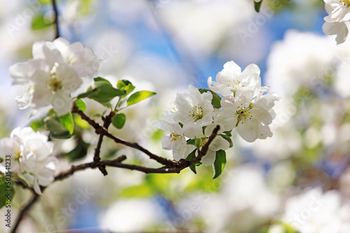 owering fruit trees on a background of a beautiful sky