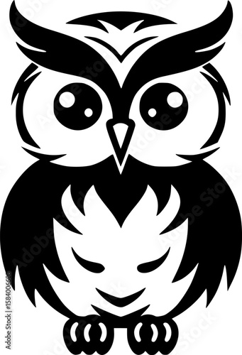 Owl Baby - Black and White Isolated Icon - Vector illustration