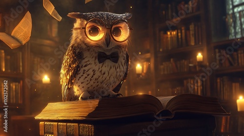 Owl Librarian in the Enchanted Library