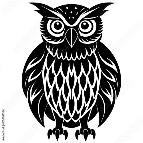 Owl on White Background - Vector Illustration - Line Art - Silhouette - Clipart