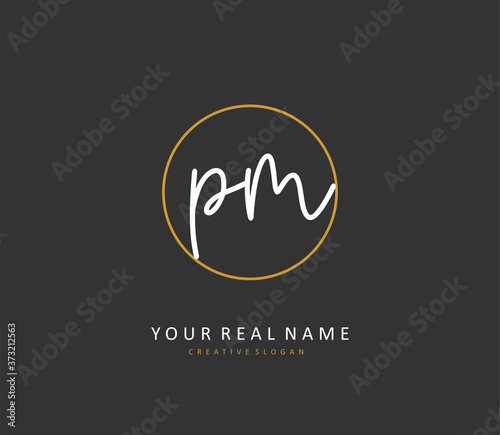 P M PM Initial letter handwriting and signature logo. A concept handwriting initial logo with template element.