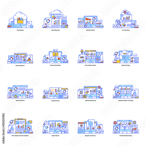 cloud, backup, online, storage, reporting, server, datum, analysis, descriptive, crm, visualisation, view, synchronization, refresh, solution, search, machine, investment, consulting, infographic, interview, question, graph, architecture, diagram, automated, vector, illustration, flat