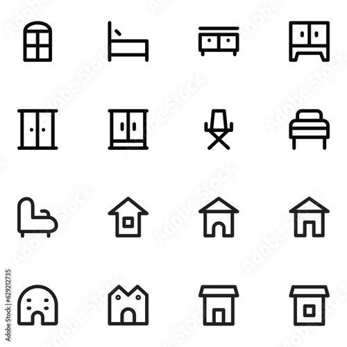 drawer, cabinet, bed, desk, stair, staircase, sideboard, bedside, closet, cupboard, safe, chair, seat, bedchamber, table, stool, flats, house, home, hut, furniture, interior, equipment, accessory, household, icon, vector, linear