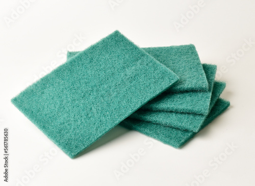 green, sponge, domestic, scrubber, abrasive, equipment, housework, nobody, white, scour, isolated, pad, scrub, object, background