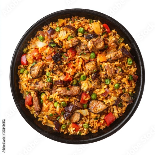 paella, isolated, white, food, meal, dinner, chicken, vegetable, dish, meat, tomatoes, cooking, pan, rice, cookery, lunch, bowl, vegetable, red, cooked, hot, onion, healthy, epicure, pizza