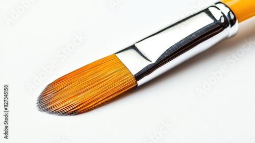 Paint brush with orange bristles and silver ferrule isolated on a clean white background highlighting its fine detailing and craftsmanship.