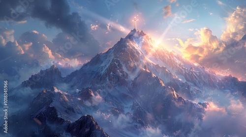 paint, cross, peak, mountain, landscape, canvas, artistry, elevation, nature, spirituality, scenery, colours, sky, cloud, detail, serenity, inspiration, composition, light, shadow, foreground, background, calmness, emotion, symbolism, exploration, creativity, atmosphere, depth, perspective, technique, beauty, journey, element, oneness, faith, heritage, scene, view, expression, horizon, narrative