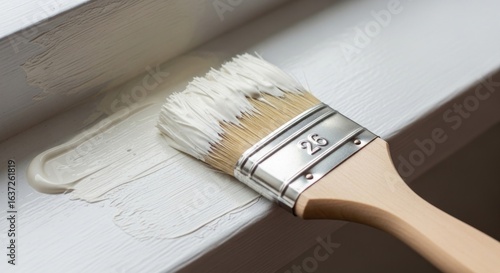 Paintbrush Applying White Paint on a Window Frame, Home Improvement and Renovation, Freshly Painted Surface