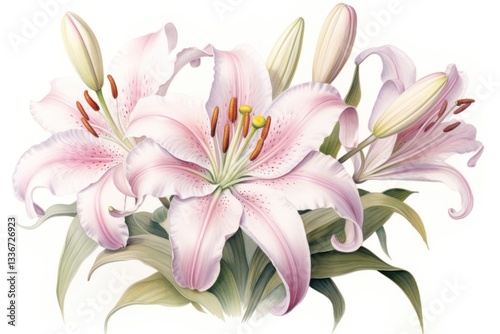 bouquet, inflorescence, illustration, digital artwork, flower head, hand-drawn, springtime, floristry, fragility, freshness, closeup, isolated, painting, blossom, cut-out, daylily, drawing, vintage, anther, botany, colours, flower, growth, nature, crayons, pollen, purple, stamen, paper, plant, white, lily, pink, soft