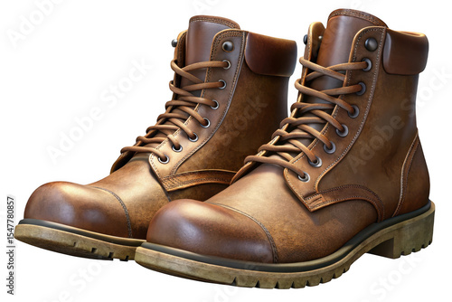 brown, boot, leather, lace, up, work, vintage, footwear, shoe, transparent, background, isolated, clipping, path, product, photo, three-dimensional, rendering, high, resolution, fashion, casual attire, military, hiking, winter, boot, on
