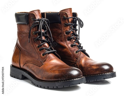 boot, leather, brown, combat, lace, shoe, pair, rustic, rugged, style, fashion, military, sole, black, detail, closeup, classic, accessory, footwear, design