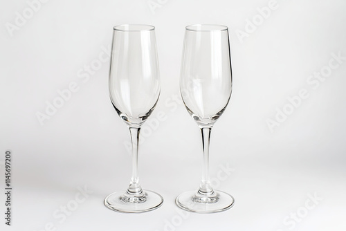 Pair of champagne glasses on white background