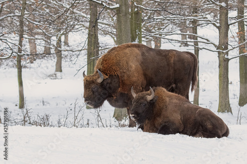 winter, snow, animal, mammal, wildlife, nature, brown, bull, wild, forest, cold, white, european, bison, fur, park, endangered, horn, power, europa, horned, standing, large, poland, hair, buffalo, 1, cattle, fauna, frost, tree, tail, ice, beast, national, snowy, landscape, photo, big, cool, freezing, snowing, 2, pair