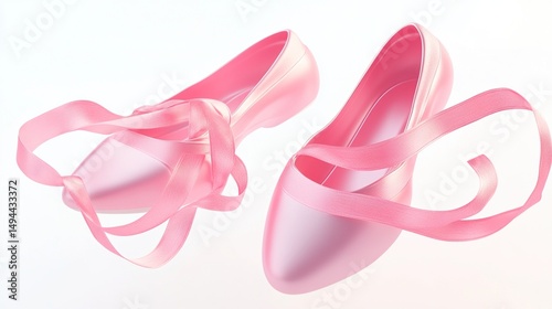 ballet, shoe, pink, satin, ribbon, tied, pointe, dance, floating, light, pair, elegant, graceful, artistic, performance, studio, photo, three-dimensional, render, digital, image, fashion, accessory, pretty, design, smooth, glossy, beautiful, texture, detail, closeup, isolated, white, background, pointed, soft, spring, delicate, air, movement