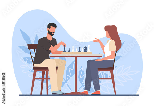 pair, man, woman, playing, chess, table, sport, tournament, intelligence, hobby, chessboard, smart, young, adult, challenger, friends, figure, design, activity, symbol, to sit, business, checkmate, character, old, together, thinks, concentration, piece, play, sitting, happy, competition, person, male, game, player, people, lifestyle, challenge, strategy, board, couple, leisure, concept, illustration, isolated, flat, cartoon