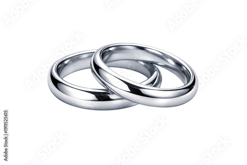 Pair of silver wedding rings interlocked on transparent background luxury jewelry for marriage symbols