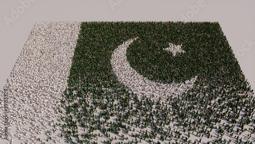 Pakistani Banner Background, with People coming together to form the Flag of Pakistan.