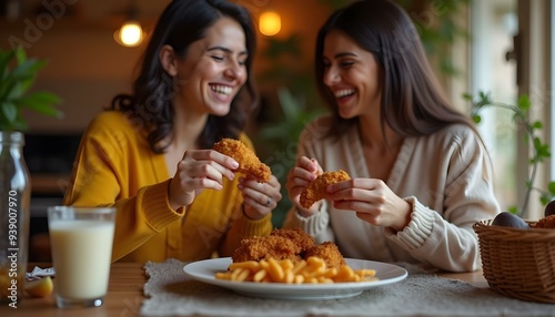 Pakistani man and woman couple eating fried chicken happily inside their home celebrating the weekend. Pakistani family, Pakistani cupels, Pakistani happy family