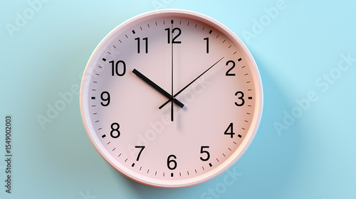 Pale Pink Wall Clock Black Hands Light Blue Background