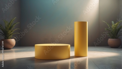 platform, stage, area, park, empty, 2, toned, drum, green, space, barrel, pale, white, pink, plinth, yellow, blue, dais, cylinder, pedestal